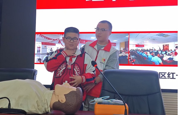 活动围绕心肺复苏(CPR)和海姆立克急救法展开,借助模拟人详细演示胸外按压的位置、深度与频率,强调“黄金四分钟”的紧迫性。